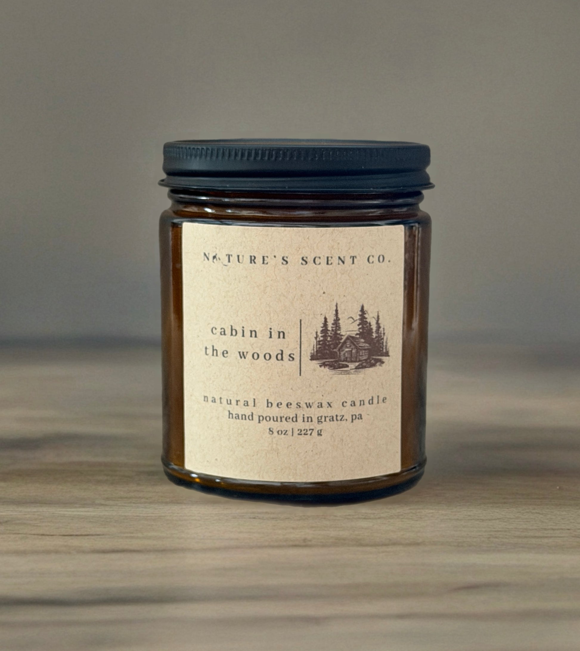 Cabin In The Woods is a 100% beeswax candle with a clean-burning wood wick, hand-poured in small batches for a natural, non-toxic home fragrance inspired by quiet cabins tucked deep in the forest. Cozy, grounding, and never overpowering.
